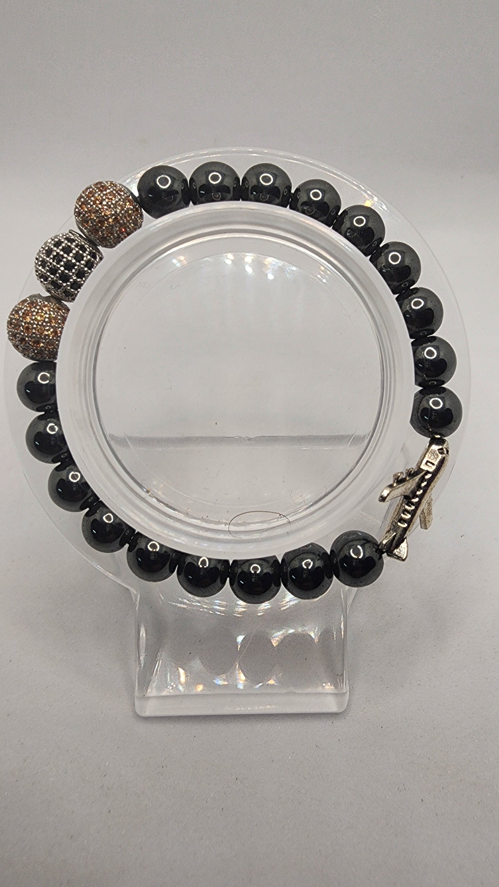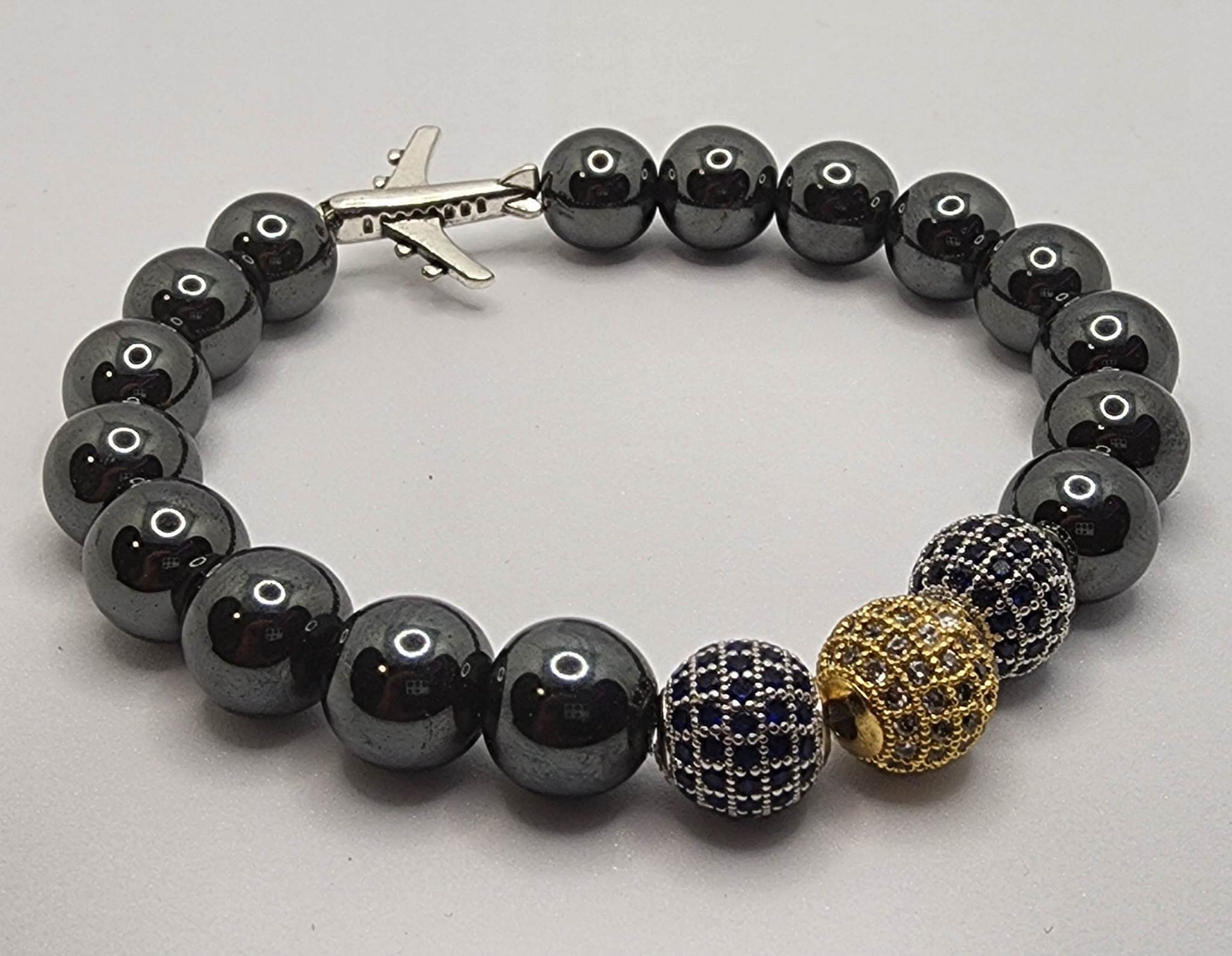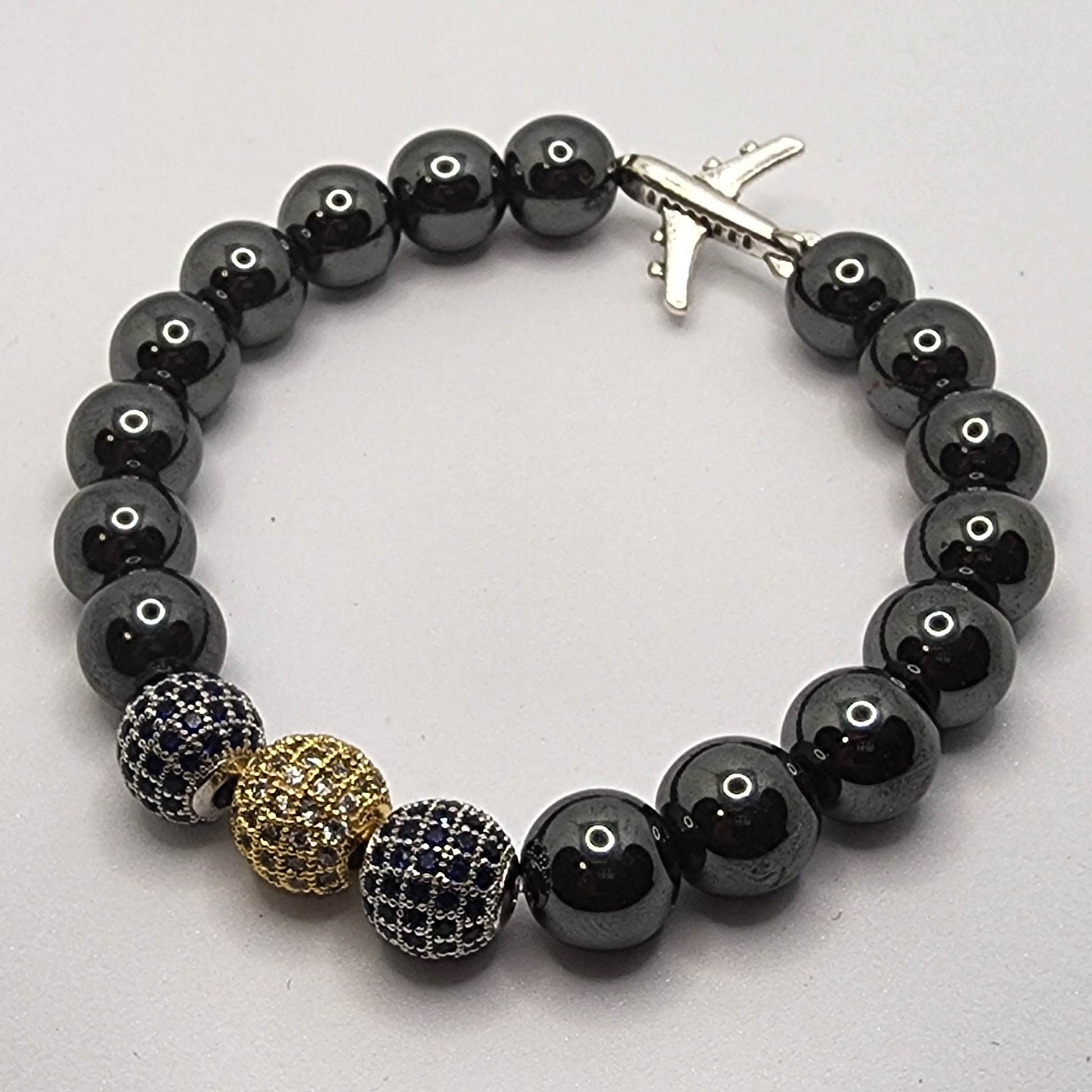 "An Idea Takes Flight" Show up and off with your favorite airline. Enjoy this custom made zirconia & hematite bracelet perfect for anytime wear.