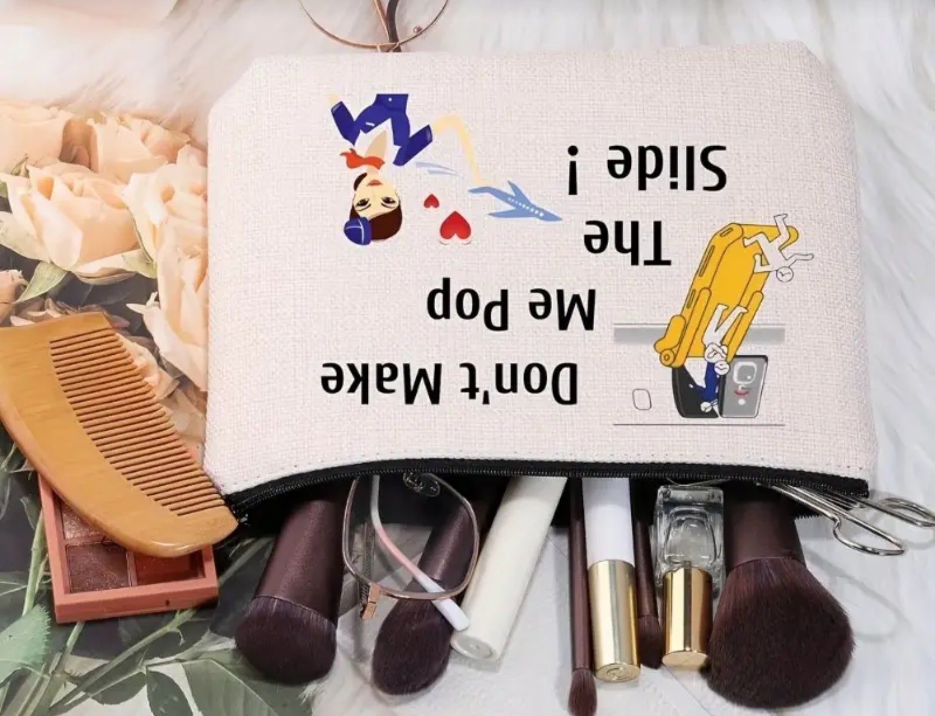 Introducing the "Pop the Slide" Make-up/ toiletry bag! This tote bag is perfect for all of your traveling needs. You can easily access your makeup and toiletries without having to dig through your bag. Stay organized and stylish on your next trip!