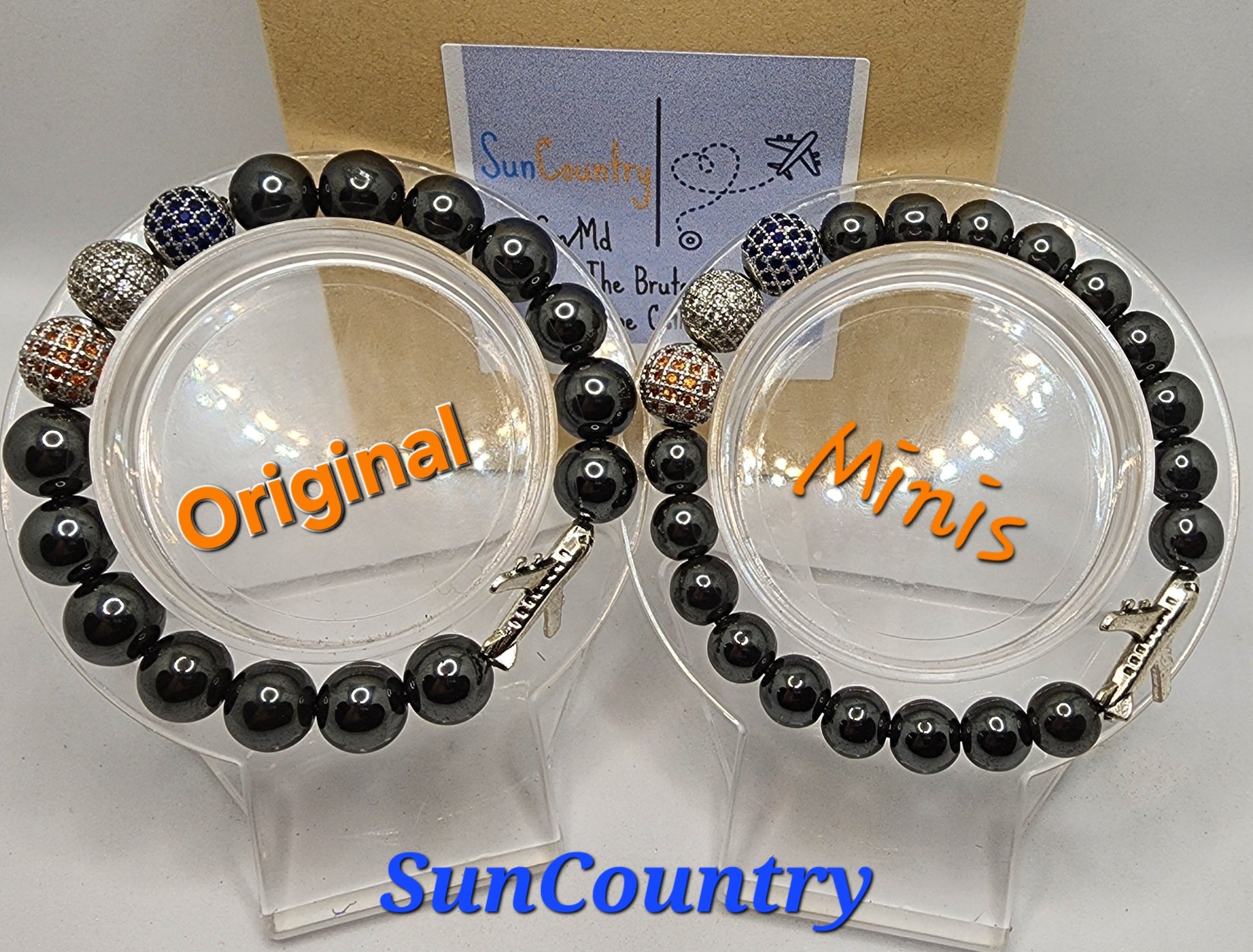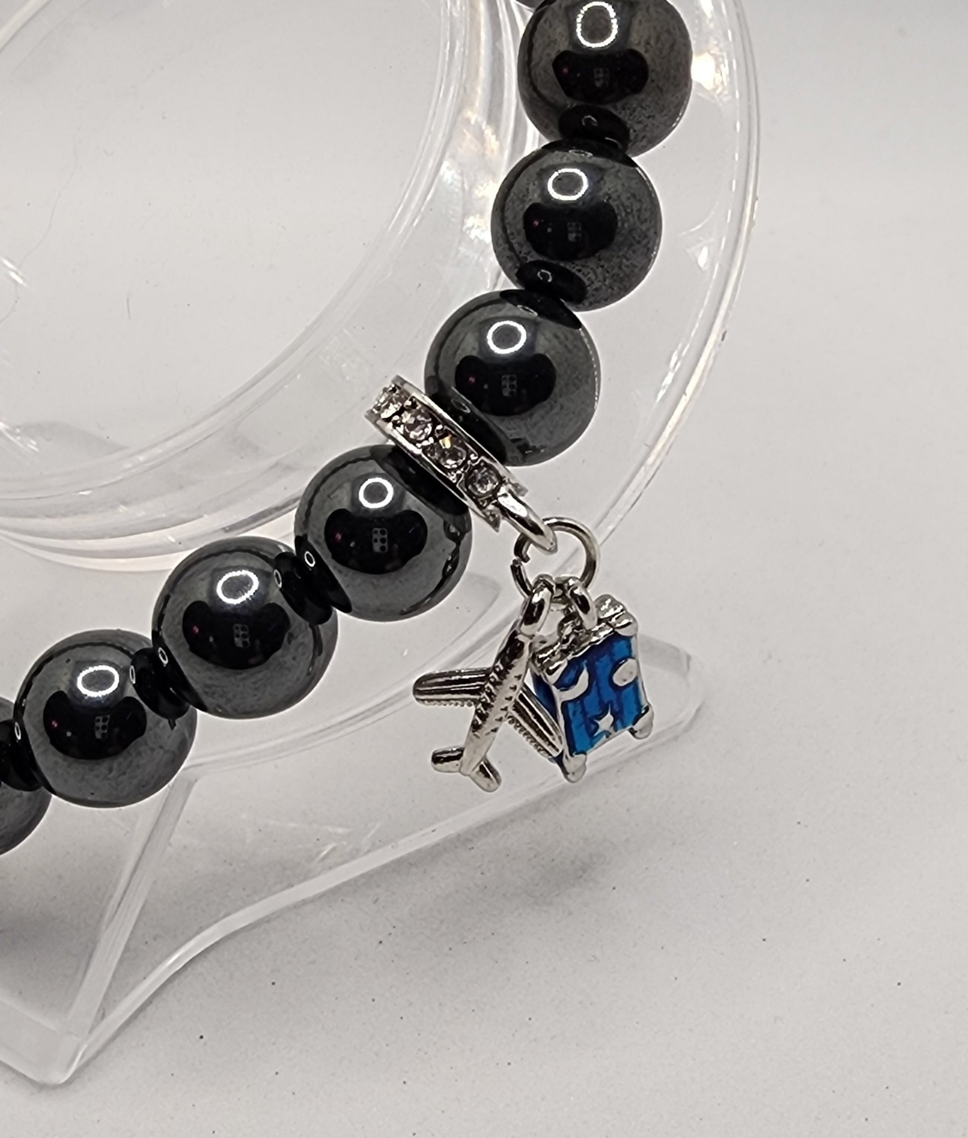 Show up and off with your favorite airline. Enjoy this custom made zirconia & hematite bracelet perfect for anytime wear.