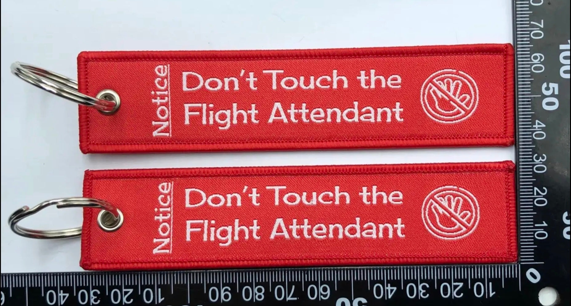 "DON'T TOUCH THE FLIGHT ATTENDANT" bag tag