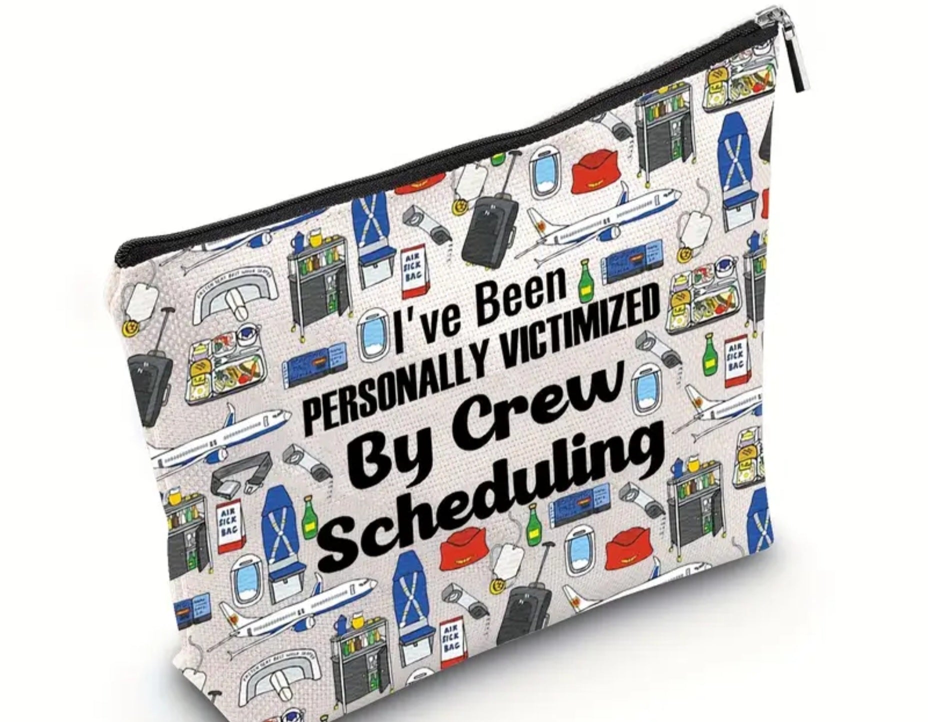 Express your frustration with Crew Scheduling in a fun and playful way with our "Personally Victimized by Crew Scheduling" tote. Sleek and vibrant, this tote is the perfect way to show off your quirky side while making a statement. (And maybe get a little chuckle from your fellow crew members.)